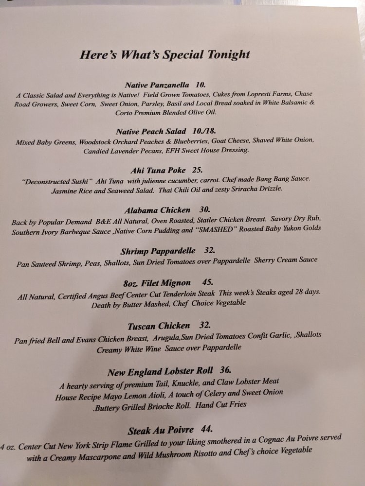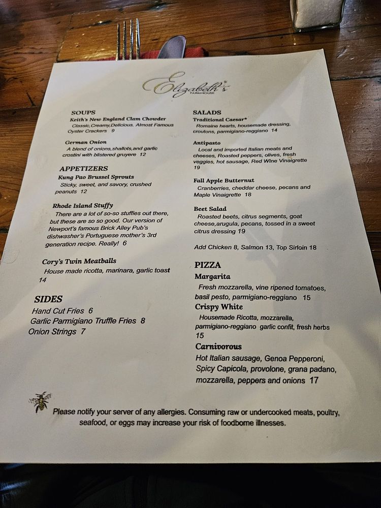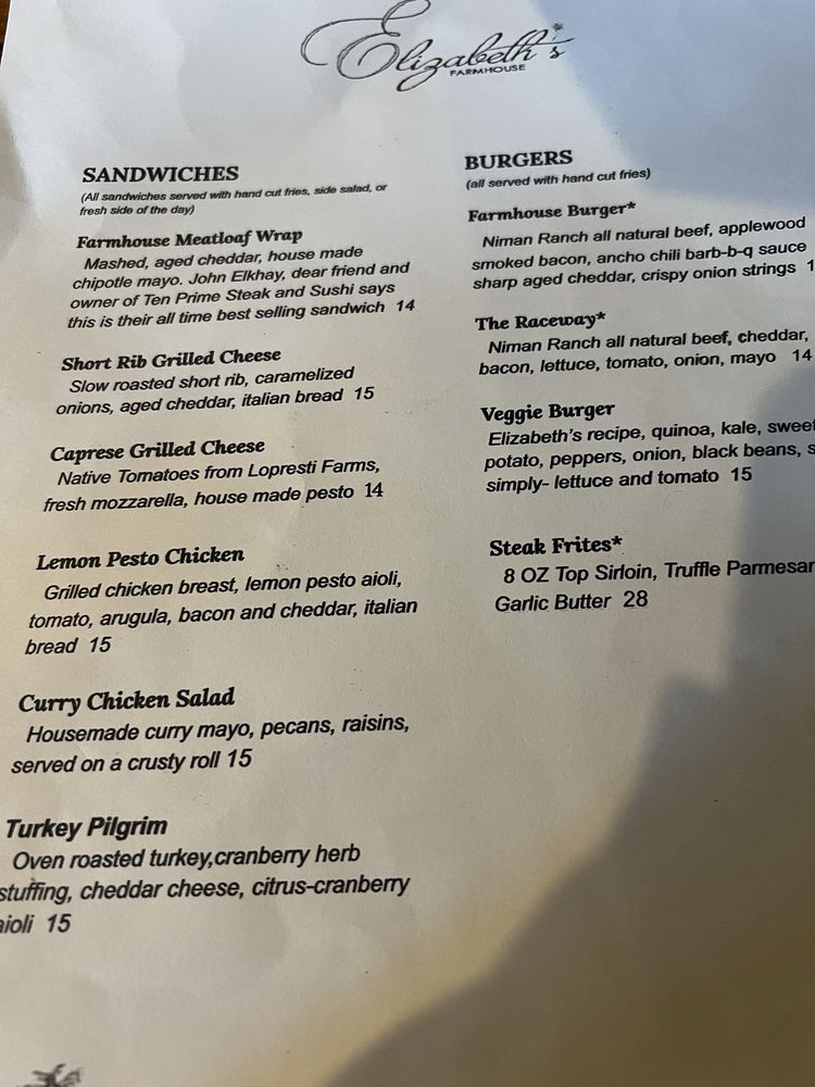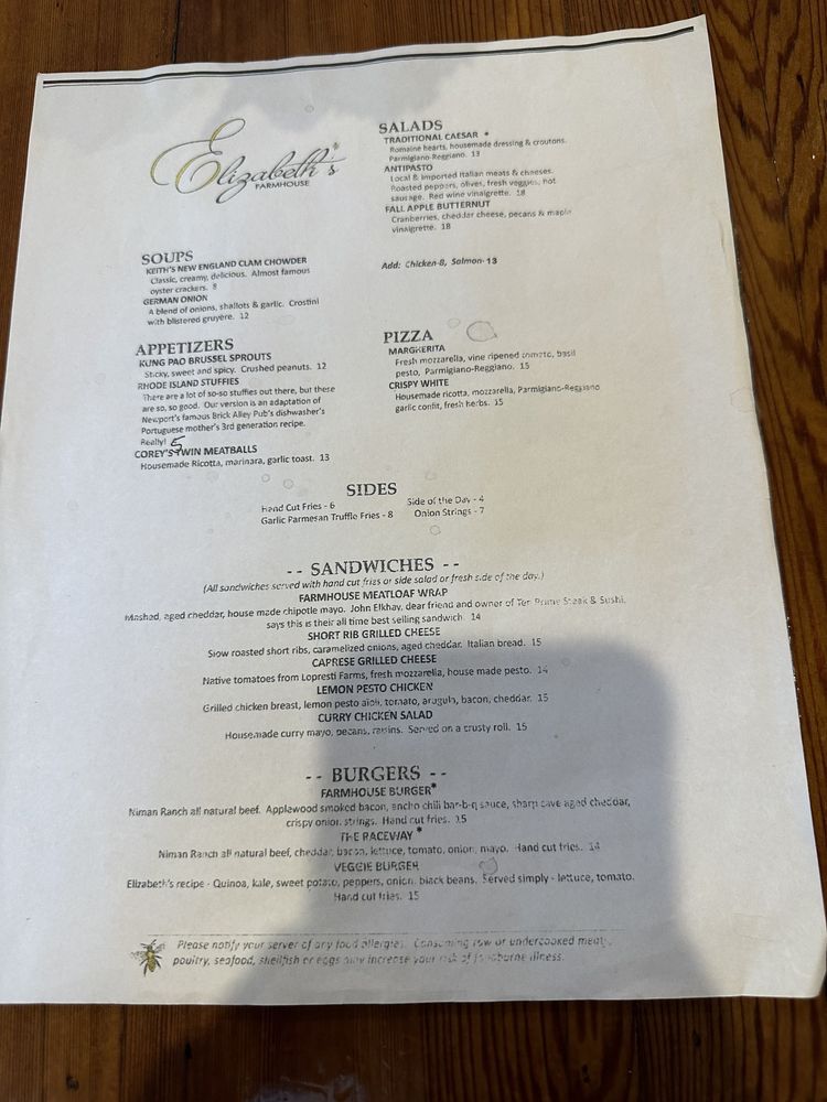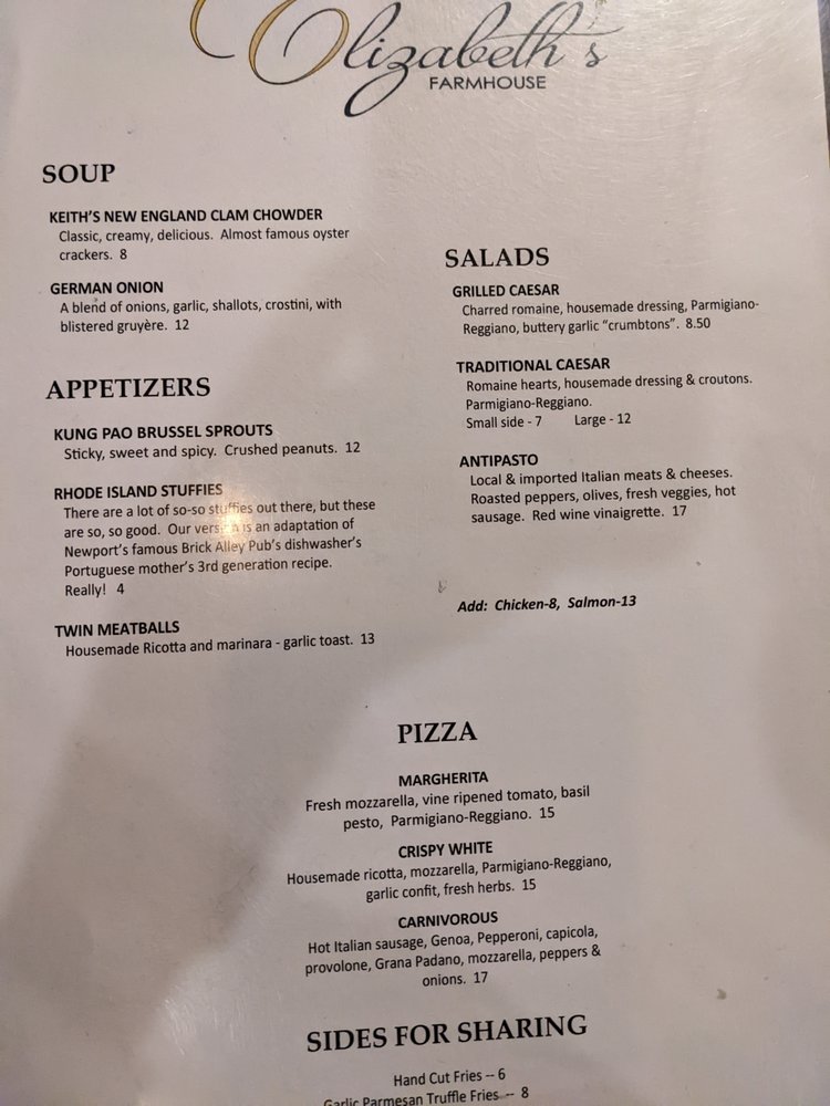 Elizabeths Farmhouse is a cozy American Beer Bar with a farmhouse vibe located in Putnam, CT. The menu boasts a variety of options including vegetarian dishes and unique cocktails. The atmosphere is inviting with gender-neutral restrooms, outdoor seating, and a 10-12 seat bar. Customers rave about the attentive service, delicious food, and innovative cocktails. Standout dishes include the raceway burger, short rib grilled cheese, stuffed Quahog clams, and the veggie burger. The restaurant also offers catering and is good for groups and kids. Overall, Elizabeths Farmhouse is a hidden gem in the quiet corner of Connecticut with locally sourced food and a warm, welcoming ambiance. Whether you're looking for a hearty meal or a creative cocktail, this spot has something for everyone.